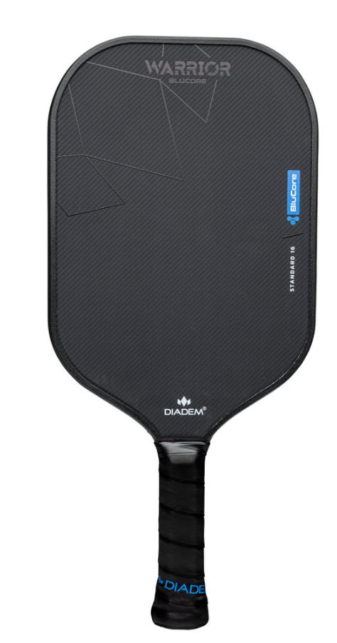In a complex line of 9 different shapes and feels, the Diadem Warrior V3 BluCore Standard Pickleball Paddle situates itself smack dab in the middle. With a 16.4” elongated shape, this paddle offers a reliable balance of pop, control, forgiveness, and spin that accommodates players of all kinds, especially those grabbing a premium paddle for the first time. At the heart of this balance is the shiny and new foam BluCore TriTech core. This core, available in 14mm for power, 16mm for all court prowess, and 19mm for exceptional control. The 19mm model in particular uses closed cell polypropylene surrounding center layer of Kevlar honeycomb to offer impressive impact resistance, plenty of feel, and poppy response. Most importantly, the use of BluCore in all models virtually eliminates core crush for borderline excessive durability and exceptional out of the box feel. Diadem believes in its integrity so much they are offering a lifetime warranty on the cores of the entire lineup, something exceptionally rare in today's market.